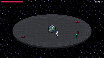 As the Last Guardian of the Earth who roams the Earth Disc, you're humanity's only hope. You must prevail. Defend Earth from the Evil Slimes in this short space themed slasher (or should we say poofer?).